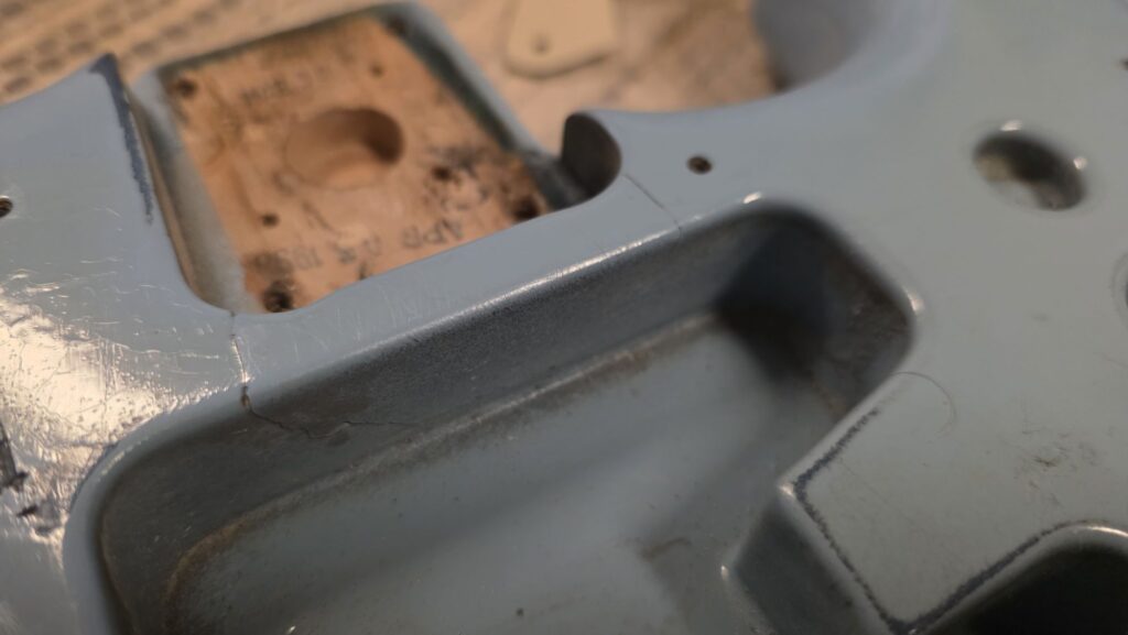 Bodyssa on entisen omistajan asennusten myötä kaulataskun takaseinässä pienimurtuma, ei vaikuta soundiin, ammattimies korjaa kotioloissakin.